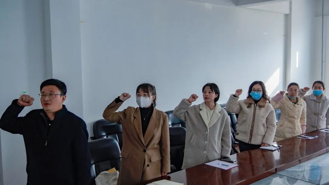 随后,由教务处主任聂忠星领誓,全体新教师面向国旗高举右拳进行庄严的入职宣誓,誓词铿锵有力,催人奋进。全体新教师通过宣誓活动,进一步明确了自己肩负的责任和使命,更加坚定了投身教育事业的初心与决心。