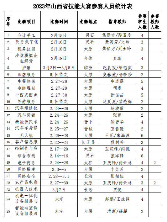 技能大赛是促进和培养技能人才的重要途径,是中职学生展示个人综合素质和技能水平的舞台,也是对职业教育发展成果的检验。我校坚持以赛促学强技能,以学促教砺精兵,充分发挥技能大赛对专业建设和教学改革的引领作用,连续九年在晋城市中职学校技能大赛中获团体第一名(因疫情影响2021和2022年未举办市级技能大赛)。在2021年10月开始的山西省职业院校技能大赛中,9个项目21人获一等奖,8个项目21人获二等奖,全省职业院校技能大赛总成绩迈入全省前十行列。尤其是会计专业的会计手工、会计电算化、沙盘模拟与企业经营赛项多年获得一等奖第一名好成绩;热菜和面点赛项实现突破获得一等奖。